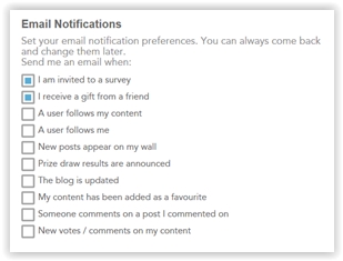 By default you will be sent all relevant surveys and opportunities to your email, any other notifications are for I-Say’s social site, you may access these options on their site.